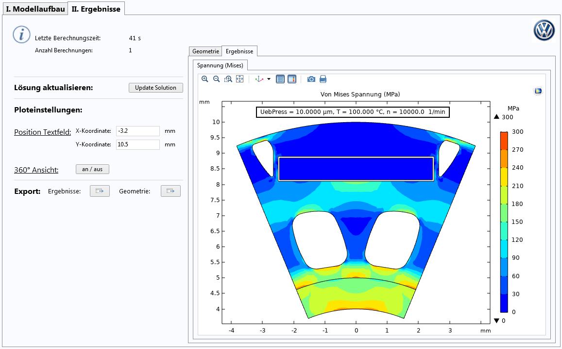 Through the stress analysis of rotor laminations using simulation applications, engineers at VW Kassel are able to save time and money during the development process of electric drives. The applications also contribute to increasing product quality by helping simulation experts and nonexperts alike automate the lengthy model construction process and standardize models and results, shortening the distance it takes to get from model to concept vehicle to commercially available EV.